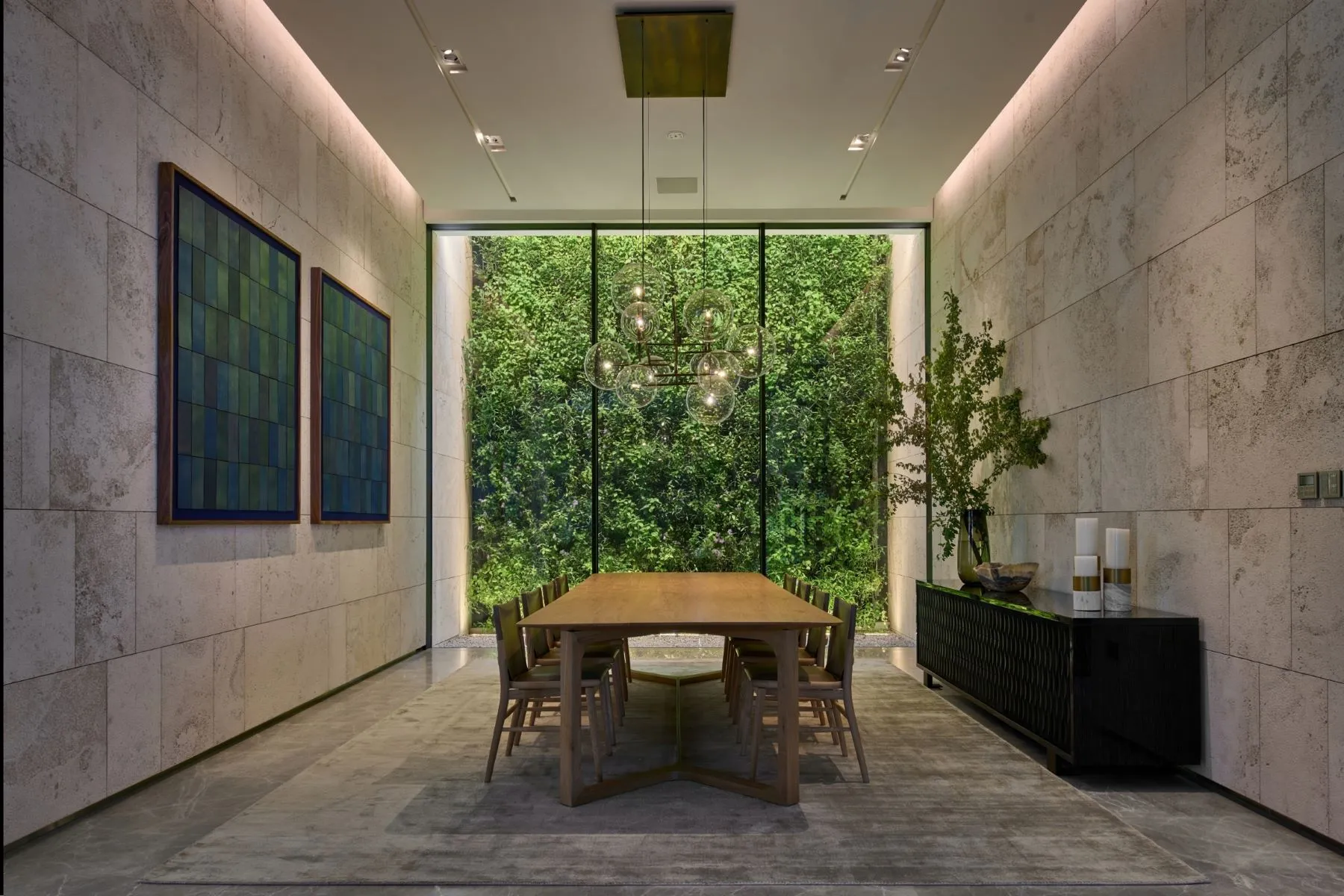 Dining can unfold al fresco beneath shaded terraces or indoors in the formal dining room, where light dances across exquisite stone surfaces. Whether it is a family breakfast with ocean views or an evening of fine wine and conversation, every meal becomes an occasion to savor.