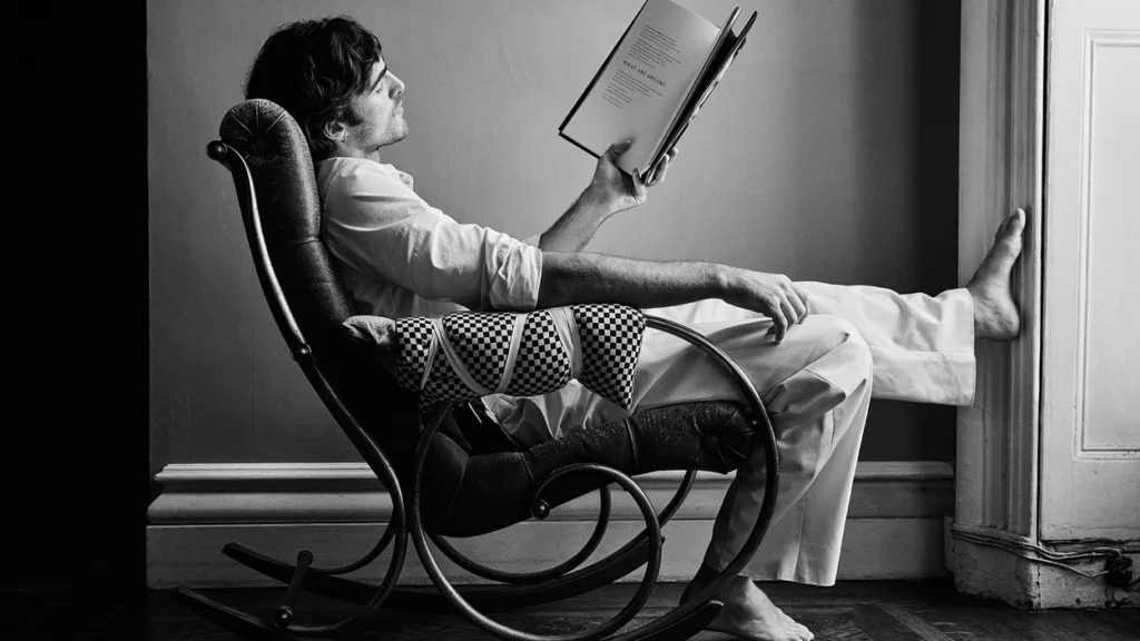 Elordi reads the poem aloud in the short film, his voice steady and gentle, guiding the viewer into the quiet strangeness of the unconscious. The poem describes dreams as “midnight movies of the mind,” places where objects appear familiar yet entirely altered, where logic dissolves and imagination creates new truths.