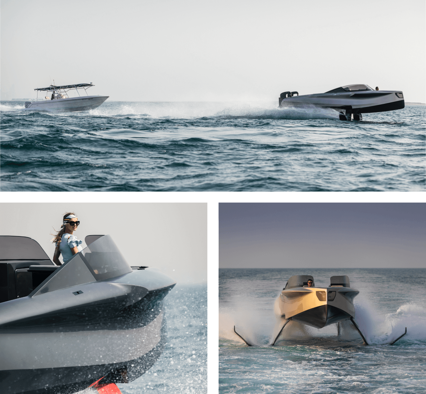 The Foiler legacy forms the foundation for Ghost’s innovations. Earlier Foiler models introduced hydrostatic propulsion paired with custom Enata torpedoes that allowed boats to glide above the waves with unprecedented smoothness. With 740 horsepower and the ability to fly 1.5 meters above the water, these earlier models redefined stability and comfort at high speed. They also introduced the quiet elegance that has now become central to the Foiler identity.