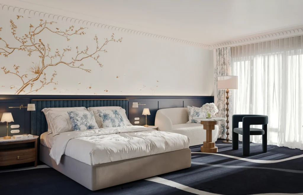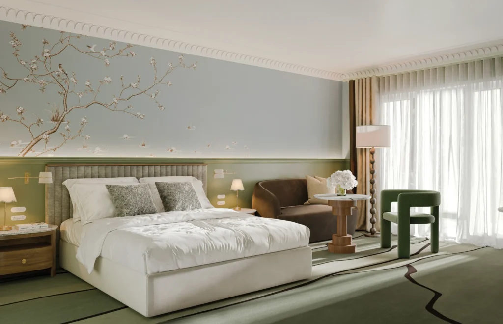 The estate’s forty-four guest rooms will undergo a complete transformation, conceived as serene sanctuaries where heritage meets modern design. Interiors will be dressed in hues of sage green and cobalt blue colours chosen to reflect both the cool climate and the deep botanical history of the estate.