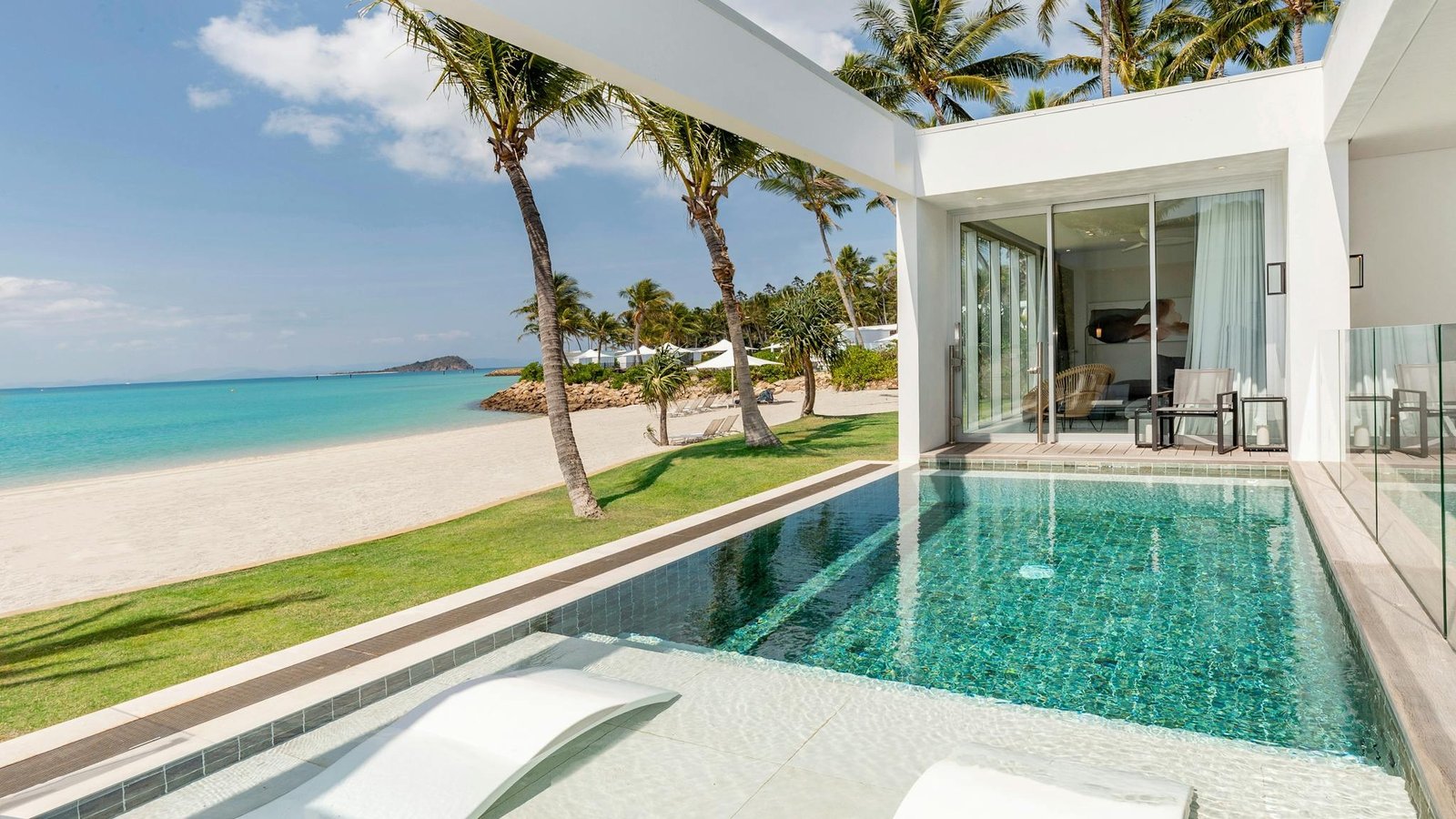 From your private pavilion, the Coral Sea stretches endless before you. Qualia is sanctuary: two infinity pools, spa rituals scented with the earth and salt air, and cuisine that feels like an art form—seafood caught that morning, herbs gathered locally, wine selected as if telling a story. A pavilion at Qualia is more than luxury; it’s the feeling of being cocooned in beauty, calm, and taste.