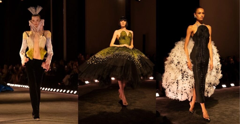This theatrical approach reflects a broader transformation in couture. Traditional runway logic prioritised wearability and craftsmanship visibility. Now narrative coherence determines impact. Viewers remember a story before they remember a technique. The garments act as costumes for an imagined world that exists only during the show yet persists through photography and discussion. Fashion therefore occupies territory once held by cinema and stage design, functioning as visual storytelling delivered through clothing.
