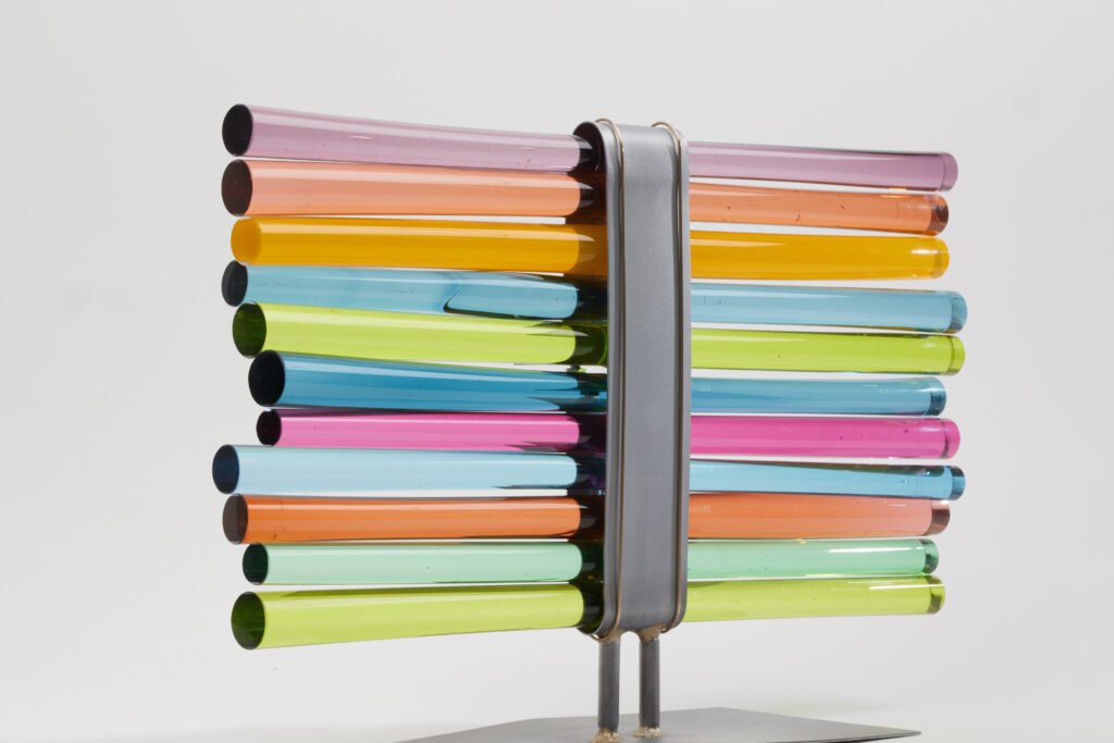 Taking home the Gerry McGovern Award, the program’s highest accolade, was sculptor Jobe Burns for his piece Intimate Conversation. The work, composed of two fluid, brightly painted pieces of scrap steel and aluminium, suggests a dialogue between dynamic forms. Rich in movement and colour, Burns’ sculpture is a testament to transforming industrial materials into something profoundly human.