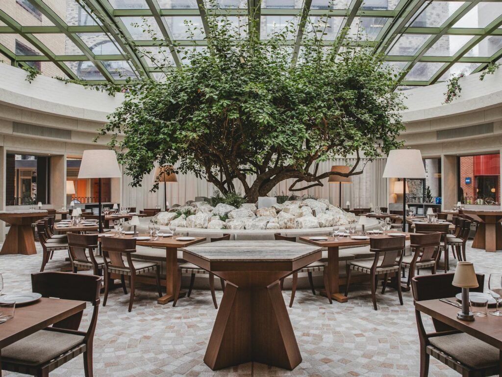 The kitchen runs on solar energy, and even the uniforms are made from recycled natural fabrics. Diners can scan a small QR code on the menu to trace the origin of the ingredients in their meal, showing that the restaurant is serious about transparency.