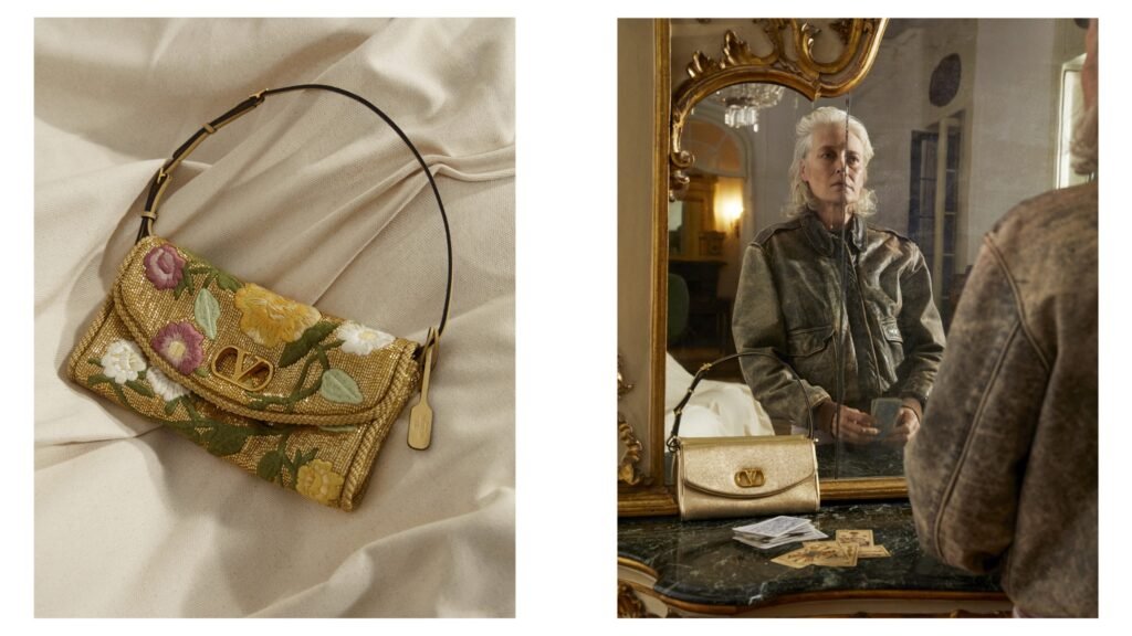 The campaign around the DeVain enhances this narrative. Visuals highlight familial connection and generational elegance. One story features a model and her daughter dressed in Valentino, sharing pieces, exchanging memories, demonstrating how a single bag can traverse age and identity. This emphasis on heritage passed down through touch gives the DeVain emotional resonance beyond design.